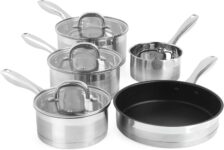 Non-toxic, PFOA-free non-stick coating.Includes essential pots and pans for everyday cooking.