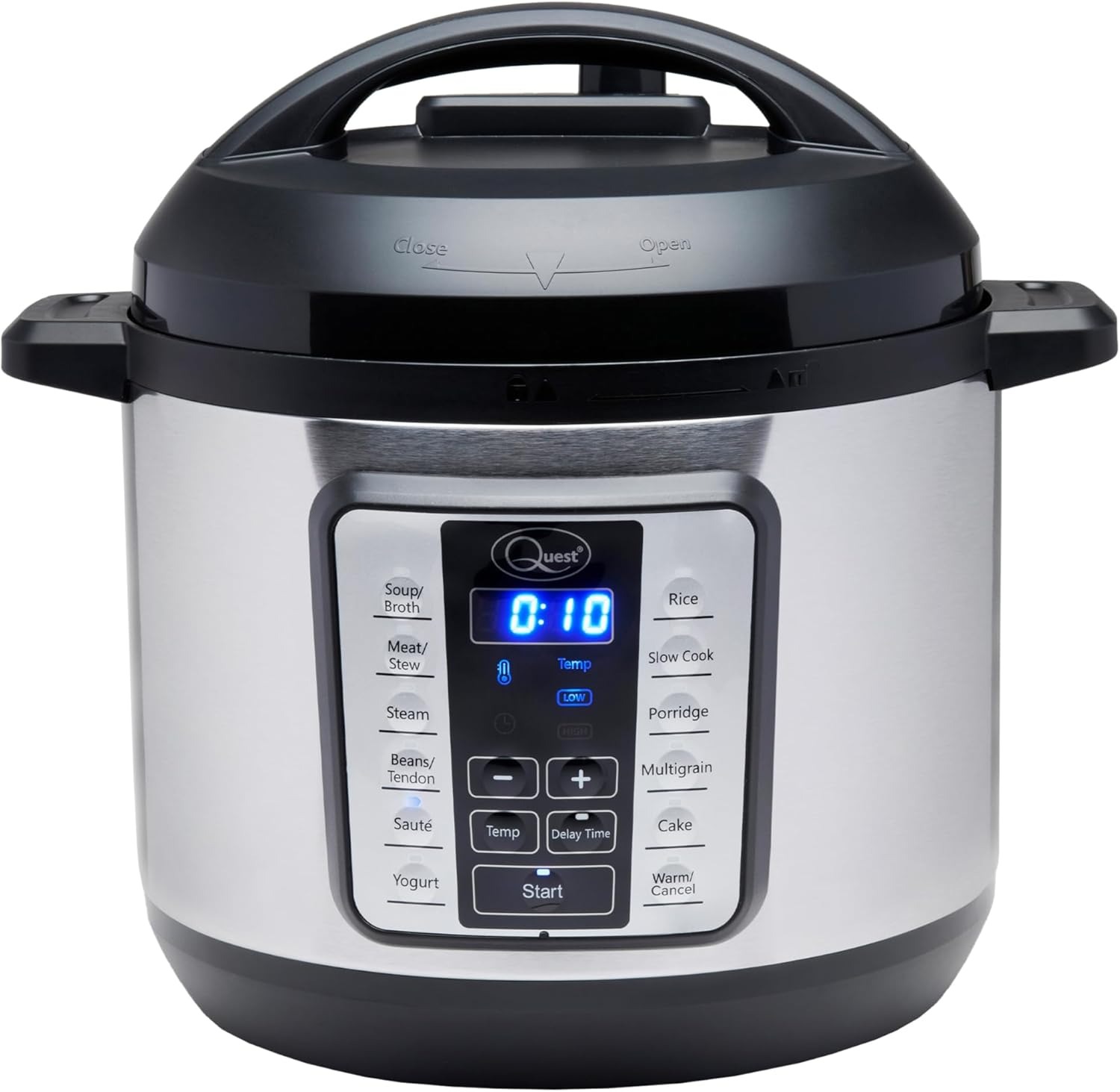 Offers 14 functions including stew, rice, soup, and bake.Easy-to-use digital display with pre-set programs.